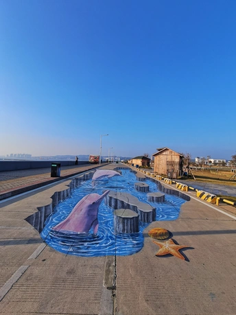 东海岸大道一侧公园观光路上,画上了涂鸦,为公园增添了艺术氛围