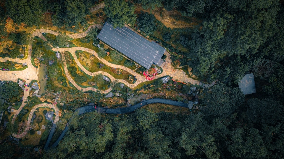 航拍广州从化天人山水生态园,俯瞰田野