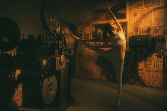电影博物馆拍的照片,老式的电影放映机,一面光线给的氛围,竟显瑜伽的形体之美!