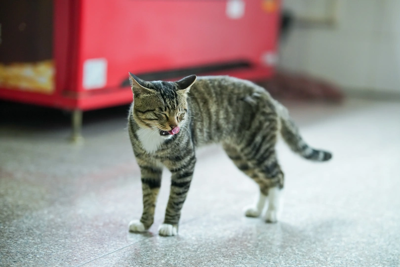 我们宿舍的猫,在外面溜达了一天,晚上悄悄翻窗跑进来的瞬间,应该是玩累了,打了个哈欠舔了舔嘴,被我抓拍了下来[偷笑]