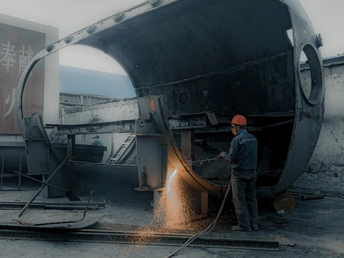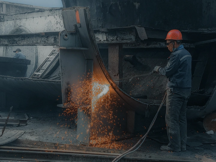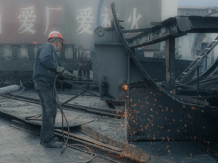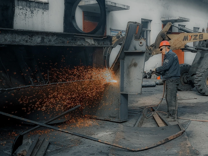 单位更换下来设备,切割分块,然后处理给废品回收公司。