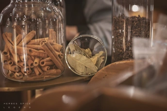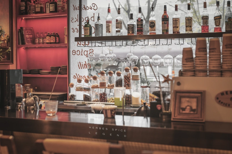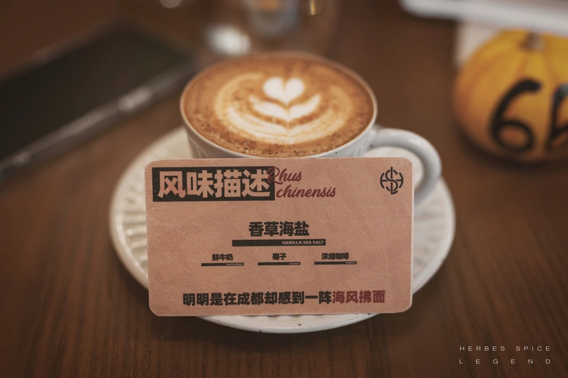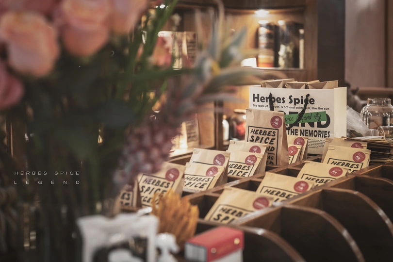 这家店叫Herbes Spice Legend,位于成都望平街,是一家专业做香料的店,同时也是一家咖啡店,店里装饰很讲究,咖啡和酒也都加入了香料元素,很有特色