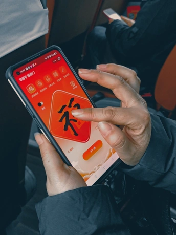 下班回家班车上,同事在写福,集福卡。