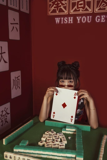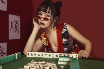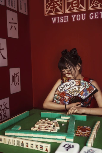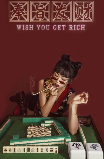 国潮风元素:对联,麻将,旗袍,金元宝,红包等道具 妆容:浓妆丸子头,带个墨镜效果更佳! 色调:红黄暖色调,高饱和低明度.