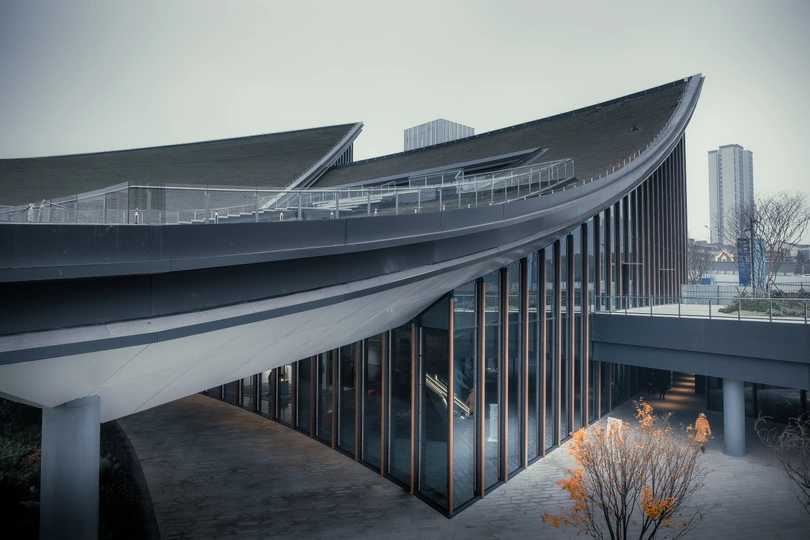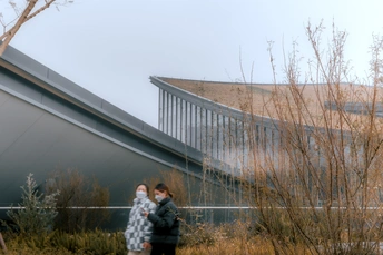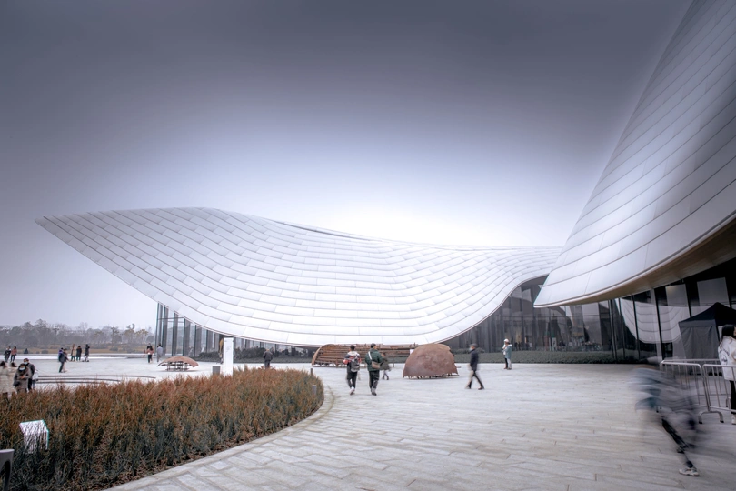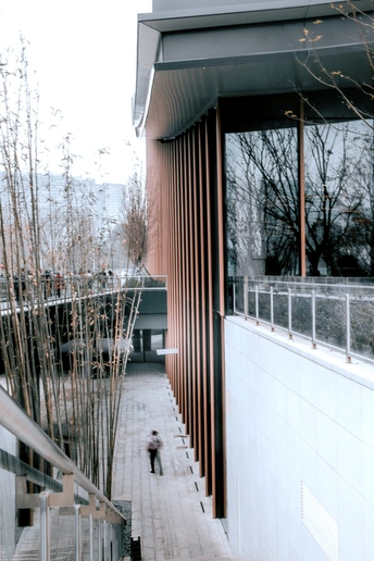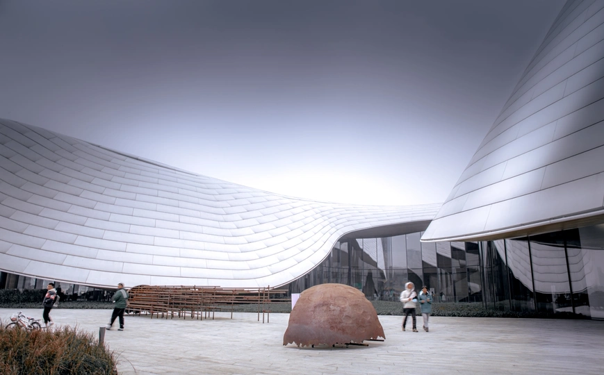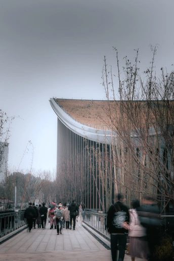 天府艺术公园里的建筑与行人