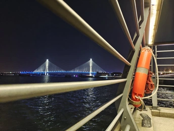 江畔夜桥,徐浦大桥,人行道好似渡轮码头