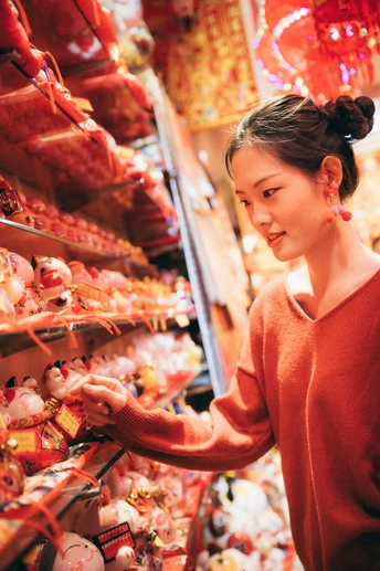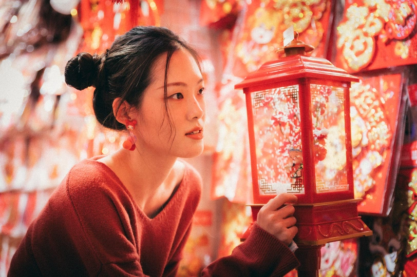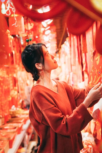 过年的主题,当然是红红火火。 这是一次临时决定的外拍。在人多杂乱的情况下,拍出来的效果比预期的好一些。很明显,这个主题是强调视觉元素的主题,充满红色春联挂饰的店铺,结合暖色灯光,氛围感一下子就饱满了。 慢慢开始明白应如何沉下心来拍东西:注意力回到相机,主体,脑海中的画面,用自己的创意去构造。