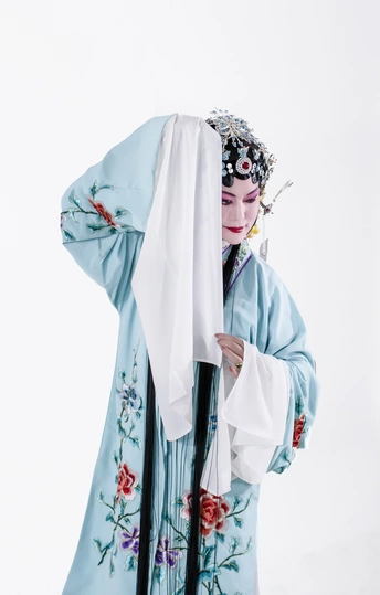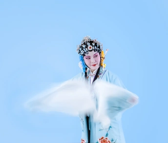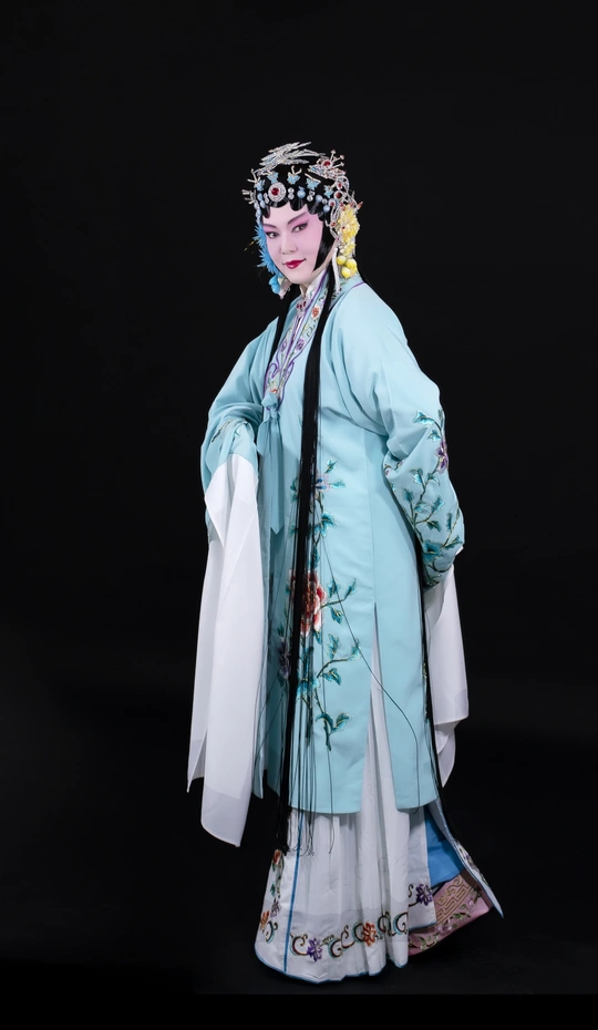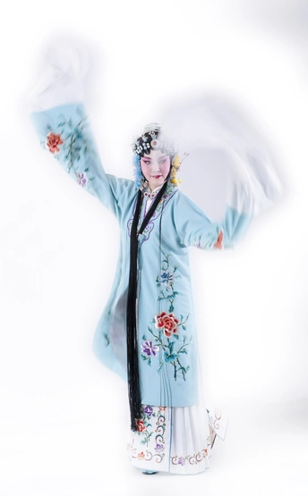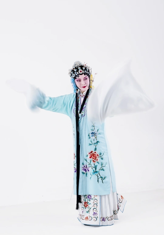 这身装扮是京剧中的青衣,演员的表演很到位拍摄之中,结合了一些慢门的技术,拍出动感的效果。
