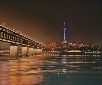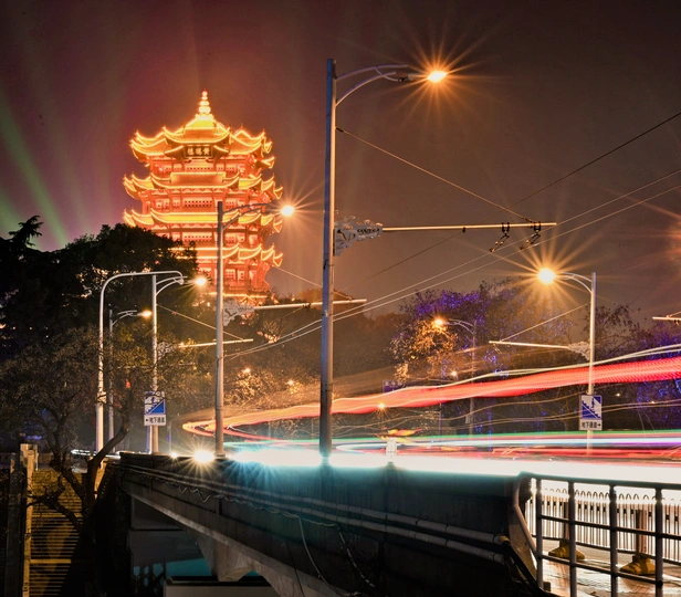 晚上亮灯的黄鹤楼是武汉夜景的点睛之笔。图1、2是著名的神仙机位,位于城中村的一处毫不起眼的巷子里,带上霓虹灯等道具很容易拍出赛博风格的照片(当然,作为独行侠(单身狗)的我,只有和黄鹤楼两眼对视了)。图5机位位于长江大桥保安亭附近,有铁丝网拦着,可以拉长焦、开大光圈消除。图中京广铁路和黄鹤楼同框,默默诉说着武汉作为九省通衢的厚重历史(但似乎白天来拍更容易出片)。图7、8是上桥时偶然发现的一个机位,图8的左边光轨是火车,右边是车水马龙。从马路对面拍更好看。 机位: 图1、2:导航得胜桥,但是这个巷子好像马上就要被拆迁了,所以赶紧去哈哈哈 图3、4:中华路码头附近,沿江走即可 图5-9:从武昌这边走楼梯上桥,走一小段路便可 小tip:将快门速度开到2-3s,可以将流水拍出丝绸感
