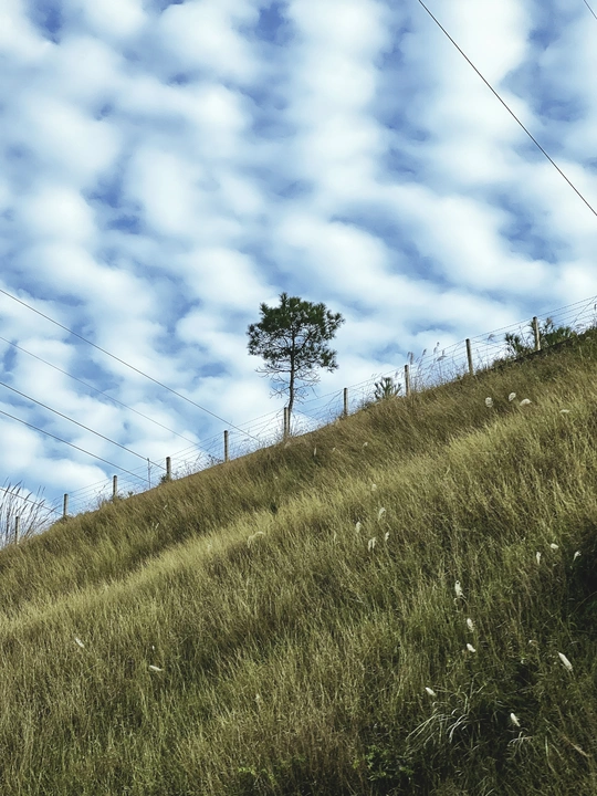 返程的路上遇到的一个山坡,锯齿状的云层让孤树的傲立更酷了