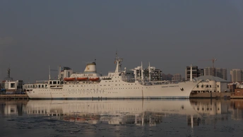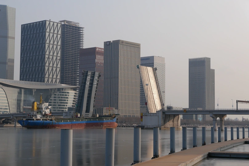 图一为靠泊在外滩公园的东方公主号游轮 图二为天津海河开启桥 图三为天津塘沽历史悠久的大桥