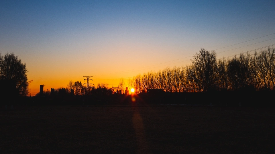 那天想起早拍日出,所以一大早就起来了。但是找了一圈都没找到合适的位置,突然发现这个地方太阳正好从夹缝中升起,旁边的事物都蒙上了一层剪影,所以拍了下来。后期增加了对比度,让整个部分分了三阶,第一阶太阳还没升起的蓝调,第二阶太阳升起的黄调,第三阶土地的剪影。太阳散下的一抹余晖也让土地瞬间有了颜色。