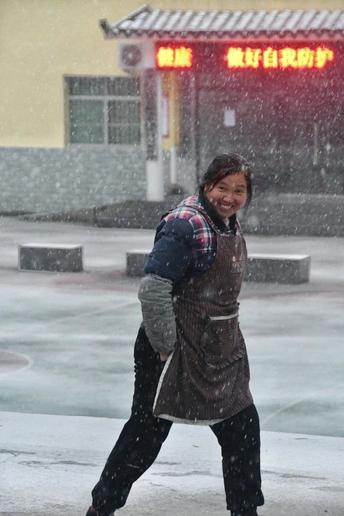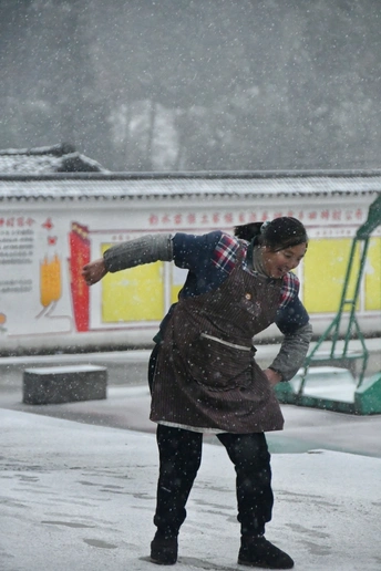 南方的雪很少见,今年是下雪较多的,这天下午下去,我刚好抓拍到了因为路面打滑差点摔倒的人物。