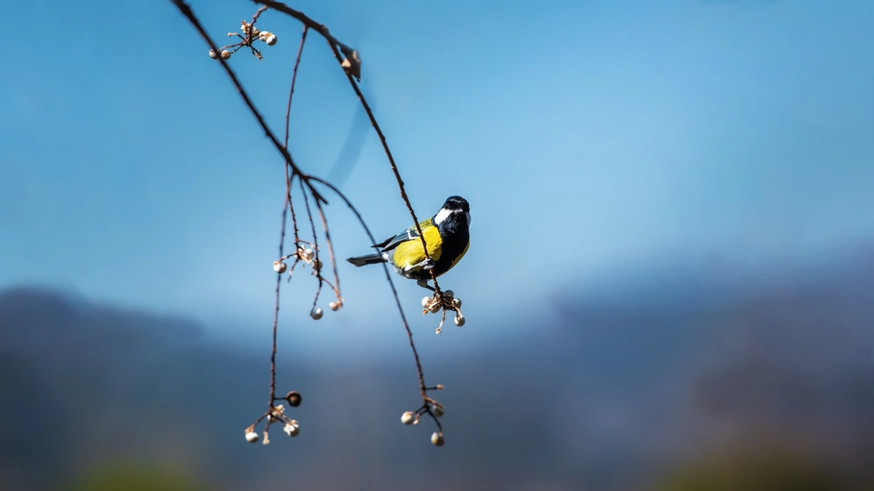 邛海边觅食的小鸟不惧怕游人的到来,悠然自得在树枝上跳舞着、仿佛在向世人说这树上所有果实都是我的。
