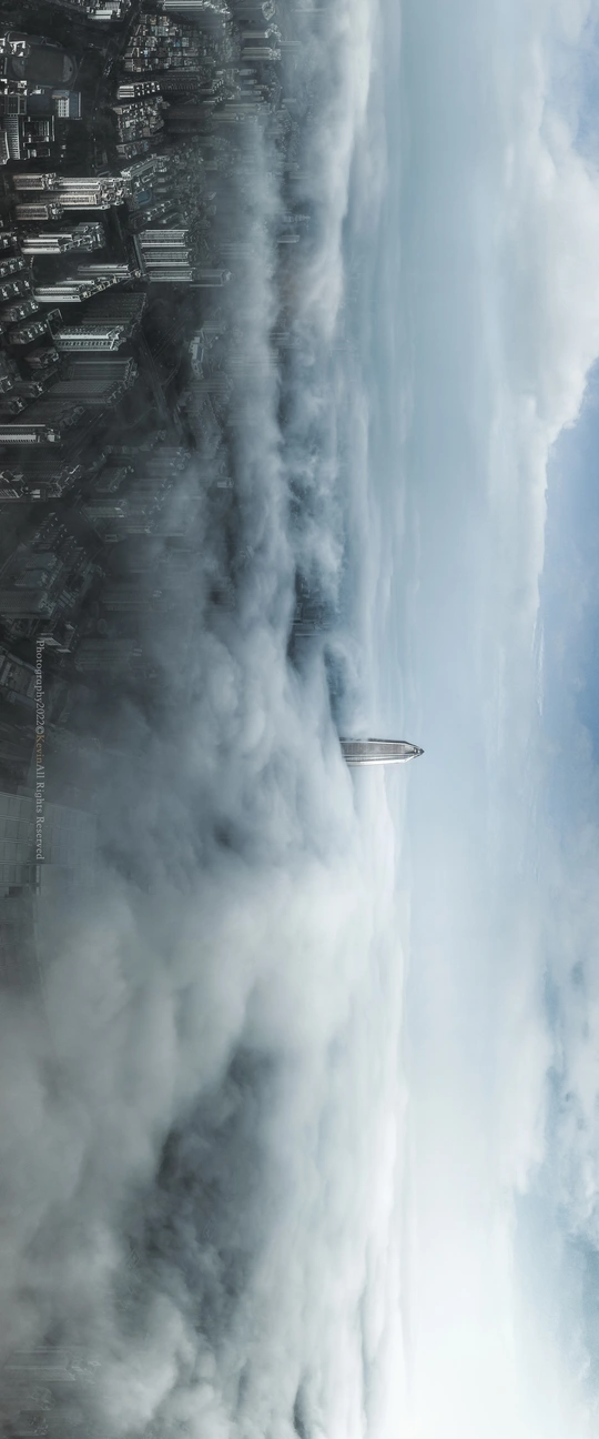 伴着蒙蒙的雾气起飞,云雾较厚,但却移动较快,犹如云浪一般