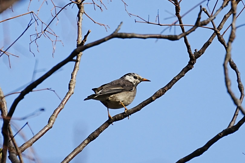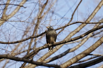 这个季节的树枝上没有叶子,即使是色彩并不艳丽的灰椋鸟,站在上面也看上去特别显眼。
