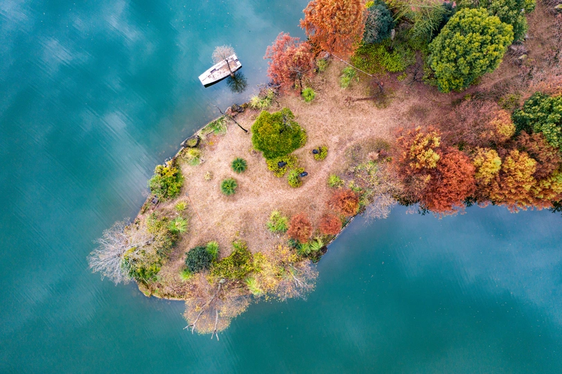 在璧山秀湖公园,用无人机正扣,拍出了一张不一样的感觉的图片
