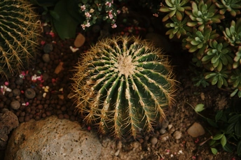 仙人球(Cactus),别称草球、长盛丸等,外形呈球状的仙人掌科多肉植物的统称,仙人球是一种茎、叶、花均有较高观赏价值,是天然的空气清新器,还具有吸附尘土,净化空气的作用。分布于产于南美洲,一般生长在高热、干燥、少雨的沙漠地带。 仙人球为灌丛状肉质植物,茎呈球形或椭圆形,绿色,花着生于纵棱刺丛中,开花一般在清晨或傍晚,持续几小时到一天,花色有白色、红色、黄色、橙色、绿色等多种颜色,花的形状类似于长长的喇叭花。