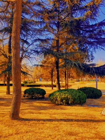 冬末初春的草丛 呈现出一片金黄的色彩, 金色的初春, 真美! 慢慢的, 慢慢的, 过不了多久, 它将变得翠绿翠绿。 绿有绿的盎然, 金有金的福贵。 摄地:邢台达活泉公园