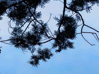 天空的蓝色留出一点白,树叶遮挡了阳光留下一片阴凉。