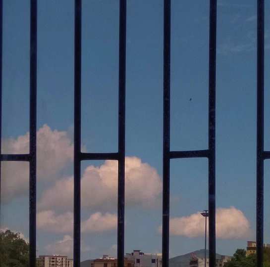 透过窗户,看阳台外云☁