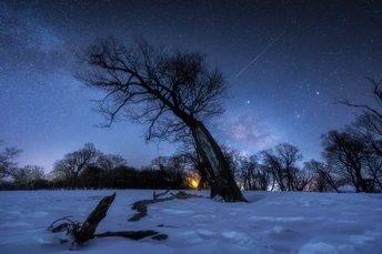3月份,银河中心同新月🌙一起升起,流星的加持,给古树增添一份神秘感