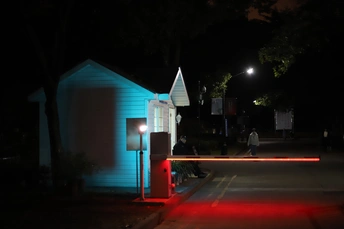 夜晚的校园很宁静,孤独的警卫厅不孤独.
