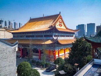 开福寺门票10元,进去以后还会送3个香,挺不错的。第一张是把绿叶改成了红叶;第二张照片爬到楼顶拍摄的,也是第一次爬高,有点恐高;第三张,大家在念经;第四张拍的是大悲殿和碧浪湖。