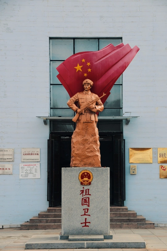 参观国防教育基地 看见雕塑做的如此栩栩如生 恰似我们战士在战场上的英勇抗敌 对敌人的眼神充满锐气 对百姓的眼神弥漫和气