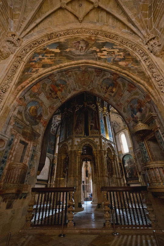 修了500年的葡萄牙托马尔基督会Convento de Cristo最初为圣殿骑士团的大本营。集中了当时葡萄牙所有建筑及装饰风格:罗马式、哥特式、曼努埃尔和文艺复兴式。最古老的夏洛拉以耶路撒冷圣墓古代大教堂为模型,又豪又美。