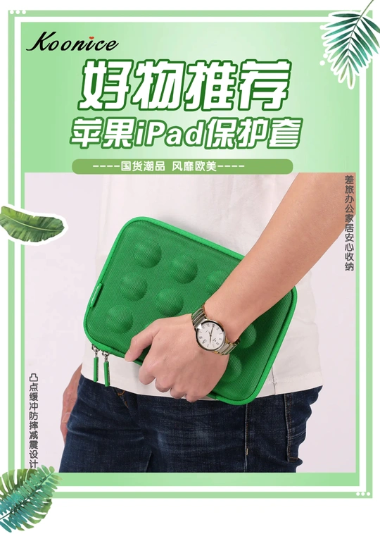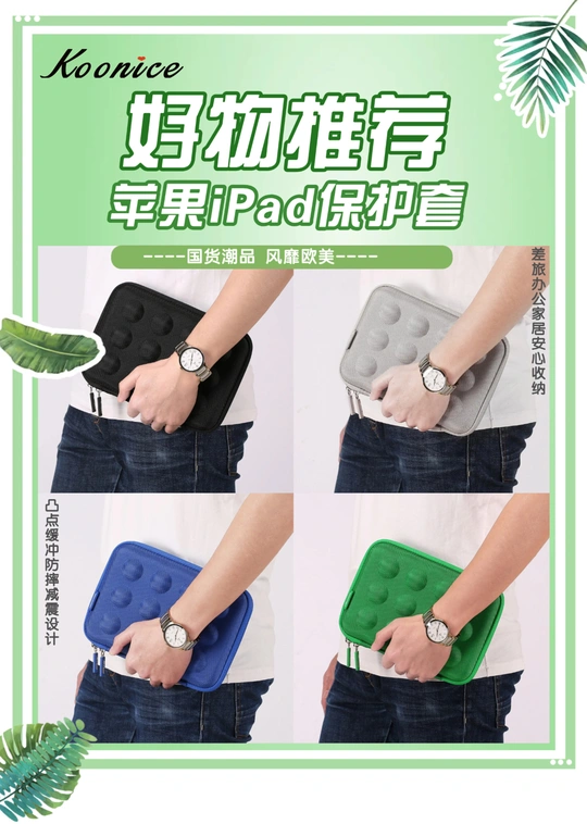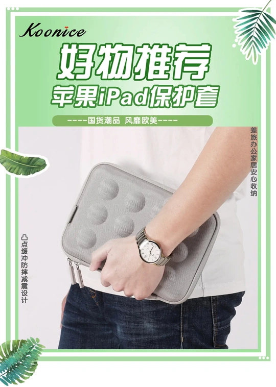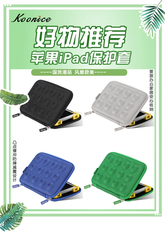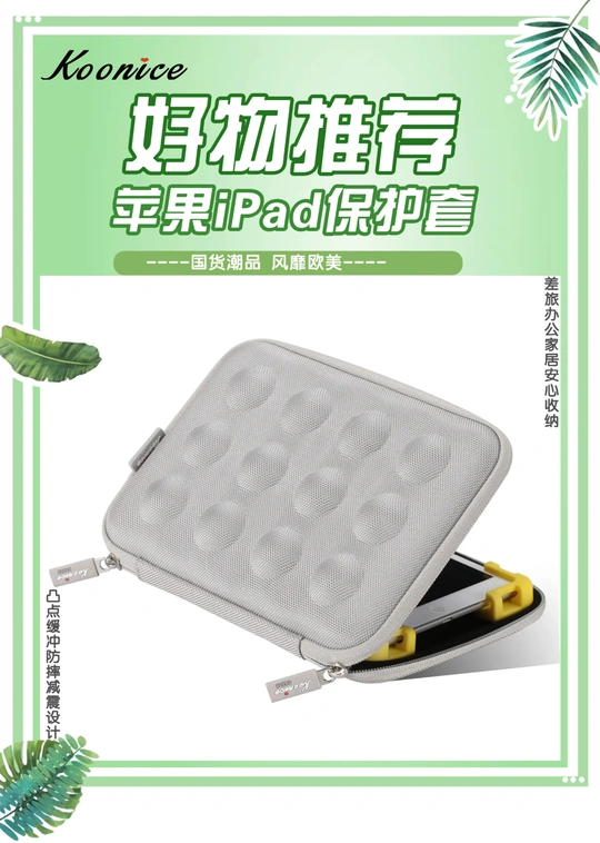 为iPad专属量身定制 为iPad穿上时尚外衣 【国货潮品 风靡欧美 防震耐摔 精致实用】 在旅行出差、学习办公及日常生活中,果粉们时常会因随身携带的iPad mini 5/ iPadpro等苹果、华为平板收纳存放不当,很容易被摔坏或弄丢而烦恼。 Koonice品牌苹果内胆包、iPad保护套、iPadpro保护套,凸点缓冲减震设计,内置移动硅胶脚垫,防摔抗压全面保护,适用尺寸相近的苹果、华为等平板电脑,旅行出差、学习办公及家居日用等均可安心收纳。舒适旅行一路相伴,从此差旅不再烦恼!可以送给自己,送给闺蜜,送给爱人,送给女友、送给男友哦。淘宝店【Braiou博莱欧】【博莱欧工厂店】