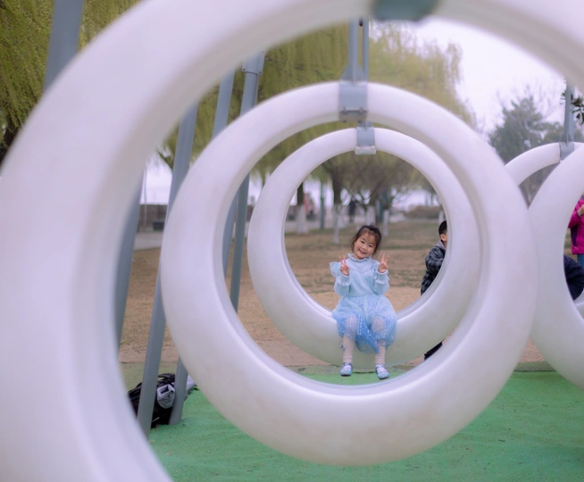 带女儿到湖边玩,一整排的白色月亮秋千格外漂亮,女儿坐在尽头的秋千上晃晃悠悠,隔着几个无人的秋千,拍下了女儿玩耍的照片。@米拍社长 @米拍