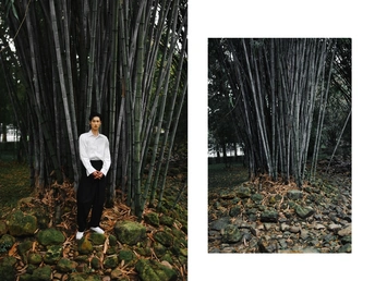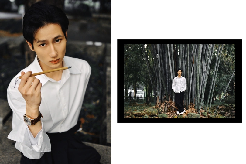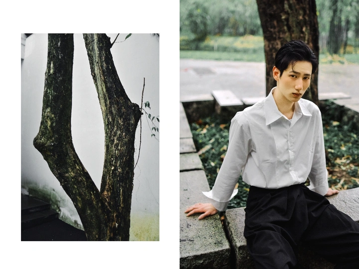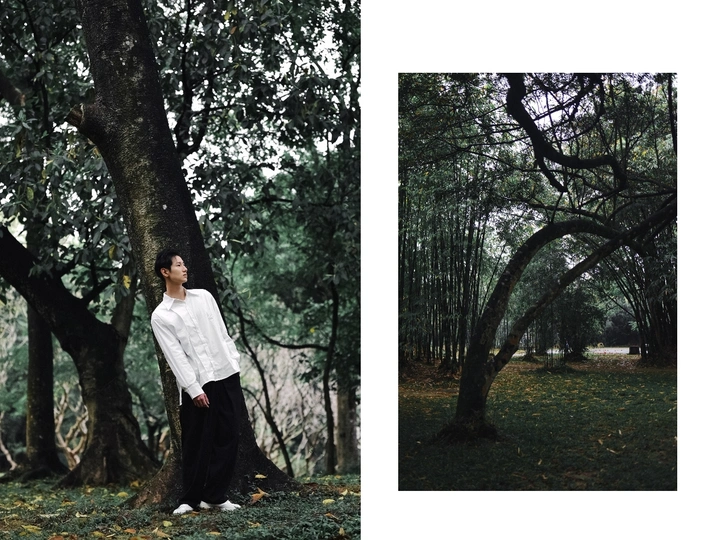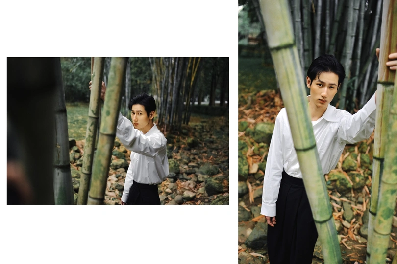第一次拍男生国风主题写真,地点选择在竹林 营造出清幽凌厉的气息 后期往胶片感方向调色,增加国风写真质感