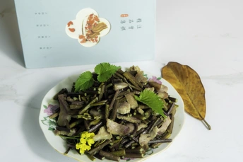 不纠结当下,也不必太忧虑未来,当你经历过一些事情的时候,眼前的风景已经和从前不一样了。 ——村上春树 春雷响,万物生。春天是花的季节,春天更属于万物。 仲春,走出野外,你会发现。春天已将冬日下的颓败一扫而光,并给自己换上了光鲜的衣裳,而绿色就是一种代表色,是一种态度。 去野外收获是丰盛的,只要走出去,很容易就得到新鲜的野菜。 狗山千,新石器时代就有人类居住,如今已难寻找到先人留下的居住痕迹,但这里野菜却是可以用丰富来形容的。 狗山千,丘陵地貌下的小山包,海拔是不高的,这里有菜地,也有茶叶林,靠近竹林的位置,多蕨菜。 往年枯干的蕨草,地毯般覆盖着地面,脚踏其上,发出“沙沙”的声音,新出的蕨菜就这棕褐色间冒出。蕨菜向上抽穗,样子像极了豆芽,只是个头要高出很多。 摘蕨菜,将拇指和食指扣住蕨菜,从根部往上,借用点小技巧,掌握蕨菜的鲜嫩程度。不能浪费鲜嫩的部分,只掐上端部分,这样太可惜了。 食指末关节横贴着蕨菜,拇指末端竖着,与蕨菜的生长方向一致,然后略微试探,感觉不易折下,则将手指稍微上移,直至最佳的位置,掐下蕨菜。 蕨菜的生长环境以竹林、茶园,还有冬茶油园居多。阴凉通风处,蕨菜更是肥嫩,阳光暴晒下