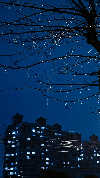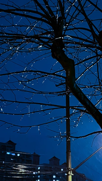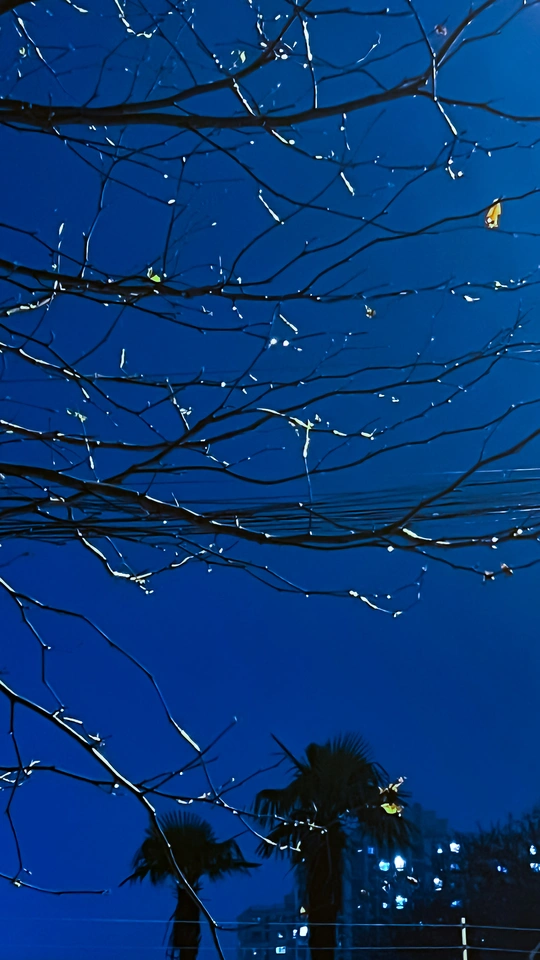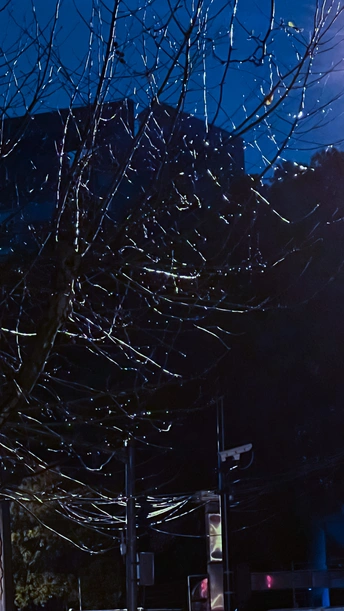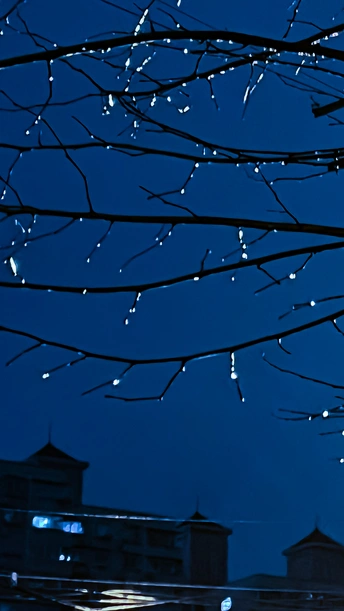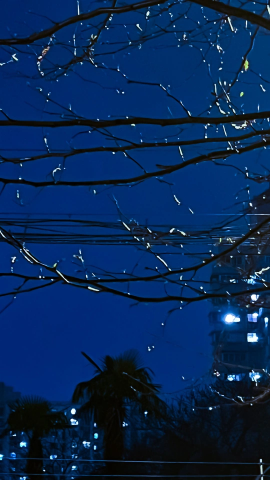 下班时候的路上细雨倾斜 在路灯的渲染下本来空无一物的枝头变得格外好看 于是在冒着细雨驻足停留拍了几张 后期以冷色掉为主调,衬出雨水的星星点点之光