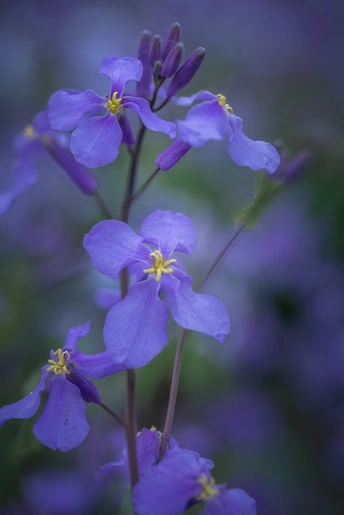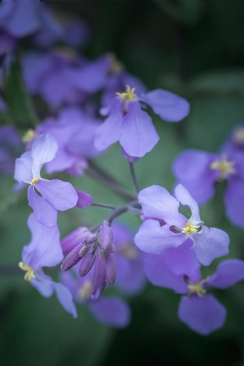 带着仙气的二月兰,在每年的三月底开花,一直能延续到五月份,北方迎来的第一抹紫色,多便是这二月兰。漫长的冬季过后,原本已经枯萎的二月兰如凤凰涅槃一般,长出新叶,开出紫花,如此这般的年复一年地继续着自己种群,世事沧桑,于它如浮云。