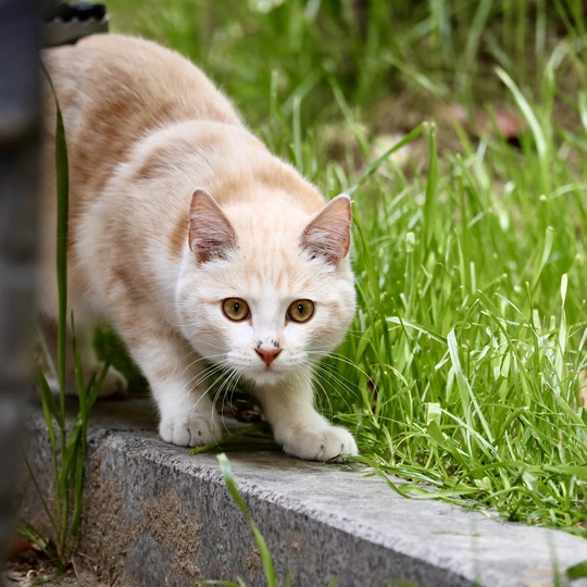 这是楼下的浅橘猫弟弟。和我关系很不错呢,每次喂它时,我俩都要腻歪上半天。别看照片上张牙舞爪的,其实是个小暖男哦!