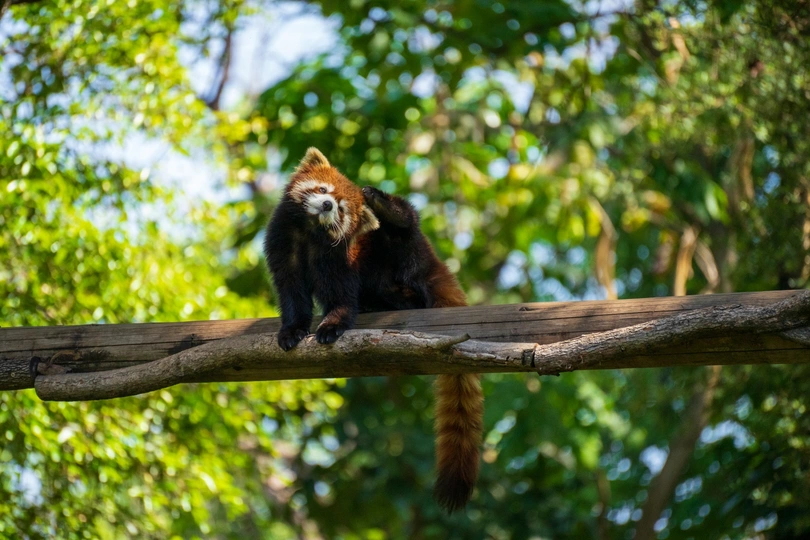 广州动物园的小熊猫 今日份小熊猫,之前一直以为小熊猫就是小浣熊,今天才知道原来是两个不同的物种。 广州动物园的小熊猫每天早上10点30左右会有工作人员投喂零食和讲解,还可以扫码参加活动领取小奖品。 小熊猫很傲娇,吃完小零食后就又爬树上来趴着了,慵懒的样子羡慕到我了。 有大房子住,有树爬,还包婚配,美滋滋的小熊猫生涯。[喜欢][喜欢][喜欢]