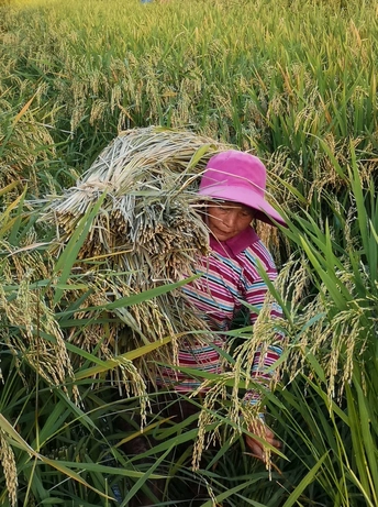 这是前几年丰收时偶然给拍到奶奶专注地收割着稻谷。爸妈总是想着把爷爷奶奶接回城里和我们一起住,但奶奶他们却总是口头上敷衍,也许对他们老一辈的人来说,好像只有一直踩着养育他们都那一片土地,时常能触摸这那孕育粮食的泥土,春天能够播种,秋天能够带着沉甸甸的背篓回家,仿佛才能够心安,才能够瞒足,每年都丰收是他们的梦想呀。