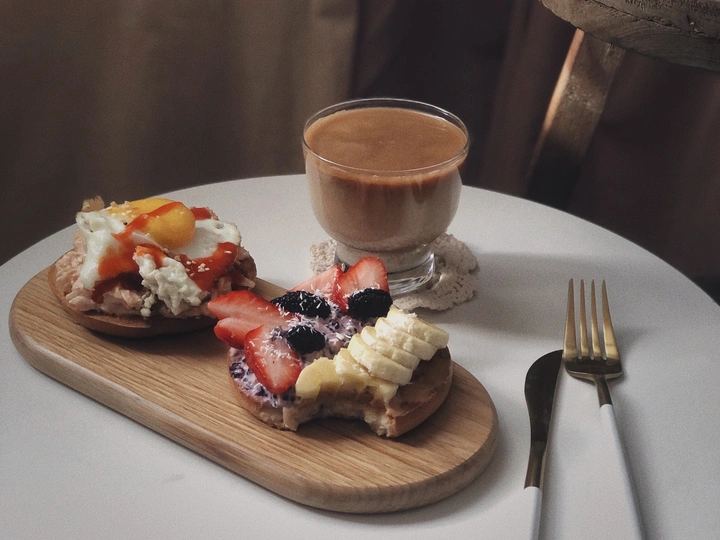 热压贝果? 甜、咸口都安排了 热压之后失去了韧劲的贝果,脆的像饼干! 挺好吃的 就是掉渣废纸 也就用了五六七八九张餐巾纸吧