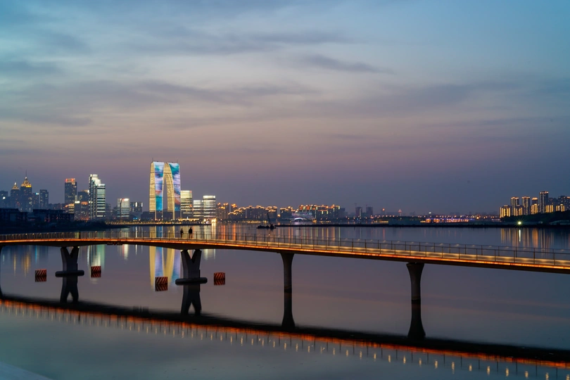 金鸡湖,位于江苏省苏州市老城区东北部、苏州工业园区中部,南邻独墅湖,中心位置处于北纬31°18′,东经120°42′,水域面积7.4平方公里。 金鸡湖属太湖支流,有进、出水口10余条,北纳娄江之水,西受相门塘、葑门塘来水,出水主要通过斜塘河泻入吴淞江,故属吴淞江水系。金鸡湖境内有音乐喷泉、水上摩天轮、李公堤、桃花岛、金鸡湖大桥瀑布等景点。 2012年7月2日,金鸡湖被国家旅游局评为国家AAAAA级旅游景区,成为了全国唯一的具有商务旅游特质的同级别景区。