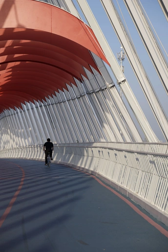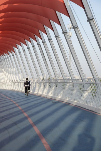 成都人有多浪漫?这座桥就是最好的体现。 桥身以新娘👰♀️的头纱为创意,提取头纱蕾丝的纹样作为设计元素,表达了对爱情和婚姻的美好向往。 桥梁整体的内部结合了教堂⛪️风格,显得神圣而又典雅。 这是在环城生态公园中,其中一座网红🌁桥,位于绕城高速、武侯大道之间,文昌路两侧,有时间的还可以骑车🚴环公园一周,大约100公里左右,预计6-8个小时左右 📸拍照Tips: 1、一定要晴天☀️去,我发的图片都是原图,无后期!!就是在6点-8点拍的,日落前2-1小时,夕阳的色彩慢慢渗出地平线,光线刚刚好。 2、💡亮灯时间:晚上桥会亮灯,亮灯时间是8点。夜幕降临,华灯初上,漫步在这座桥上,尽情邂逅成都特有的浪漫情怀。 3、来往的自行车、摩托车🏍比较多,拍照主要安全。 4、👗穿着:可以穿红色衣服,因为桥上面是红色,下面是白色的,一点红很出片。其他鲜艳的衣服也可以,比如:黄色、蓝色。 🌉桥名: 跨文昌路桥 📍地址:导航公交站“武侯大道文昌路口站”, 🚗停车场:上述公交站前面有停车场,10元一个小时,后续每个小时加1元。 🚇公共交通:地铁9/10号线华兴站B口步行/骑车1.7公里,或者坐306公交到文昌路武侯大道口站下(抬头就是蕾丝桥了)。