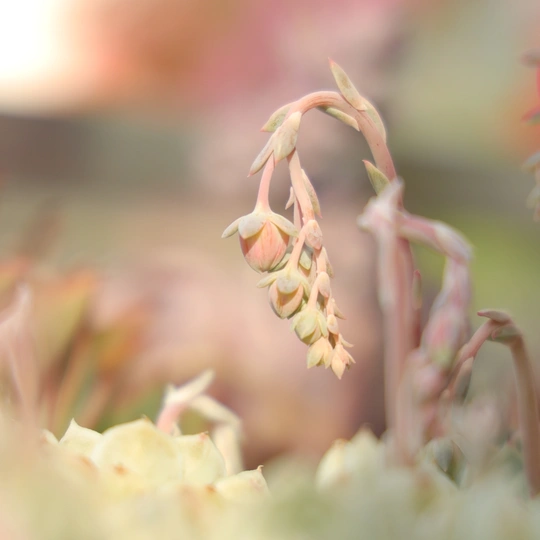 春天到了,多肉粉粉抽出花剑,沙罗姬牡丹的花苞粉嫩至极♡