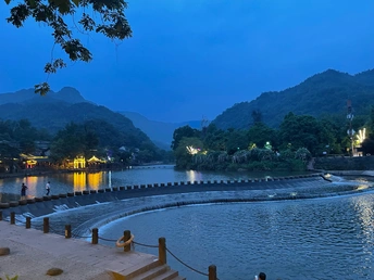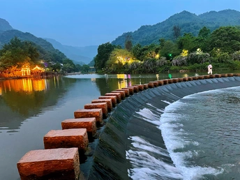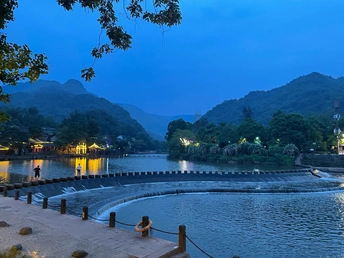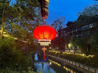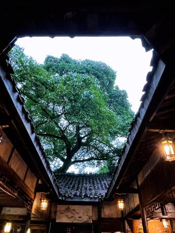 柳江古镇建于南宋,与现代建筑一水之隔的是明清时代的建筑。一座座古朴的木板房吊脚楼依着根枝盘错的黄葛古树,木板房半边街的尽头,连接着一条石板长街,尽现街道的沧桑古朴。在朦胧的夜色中,听雨望江,仿佛找到了“烟雨柳江”诗情画意……