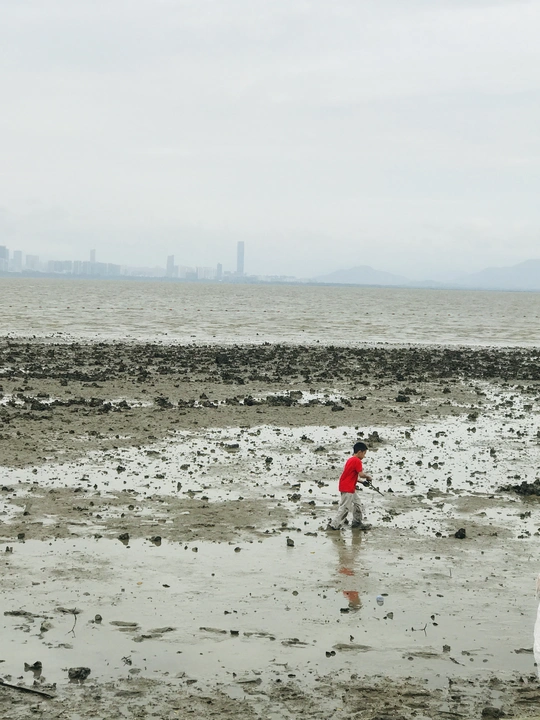 在深圳人才公园看到的一幕 这小孩不管鞋子一直抓螃蟹 估计回家要挨打???