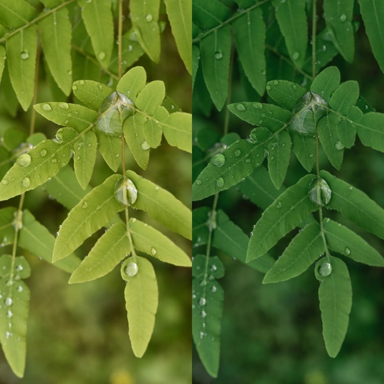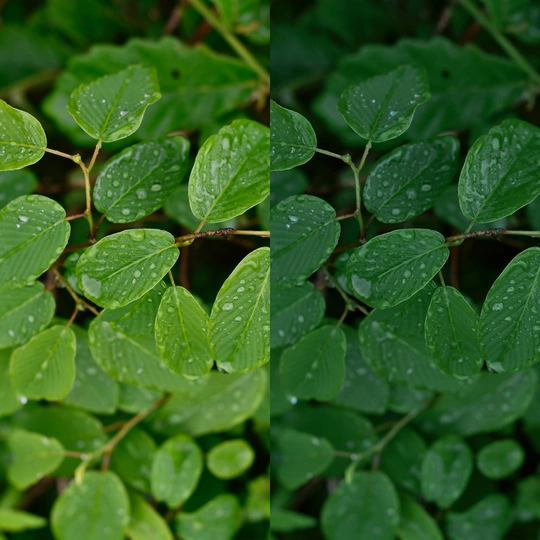 拍摄器材:尼康D7500 思路:让整体画面看起柔和、干净 情感:喜欢这样的天气,小小的雨,刚刚好不用打伞,就这样,像雾又像雨,凉凉的,配上阴阴的天气、阵阵的凉风,让人感觉很舒服。 工具:PS Camera Raw滤镜 主要调节参数: 色温偏蓝、色调偏冷:以表达雨天悲凉之感 降低高光、白色色阶:画面更柔和、温馨 增加锐度值:使雨珠看起来更清晰 HSL:1、色相区域:黄色值增加(+),浅绿色值减小(-),蓝色值减小(-) 2、饱和度:绿色值减小(-)、浅绿色值减小(-) 3、明度:绿色值减小(-),浅绿色减小(-) 其他参数多多少少调节,根据自己的感觉和心情来。