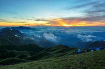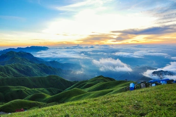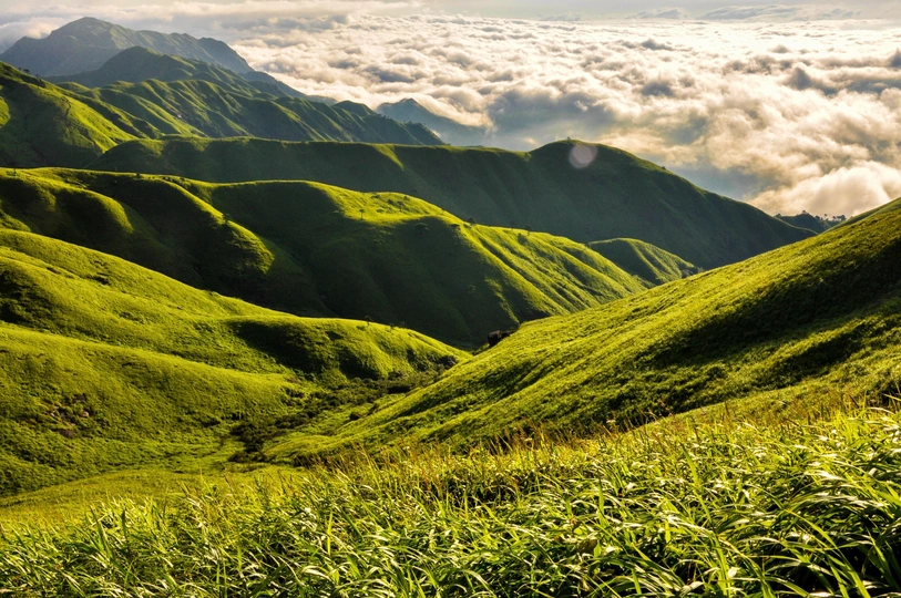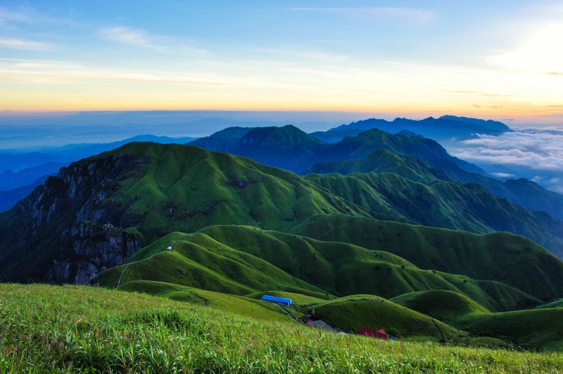 萍乡武功山的的绝美日出,配着如龙脊般的蜿蜒山体,如万马奔腾般的高山云海,让人真正体会到一览众山小的豪迈。