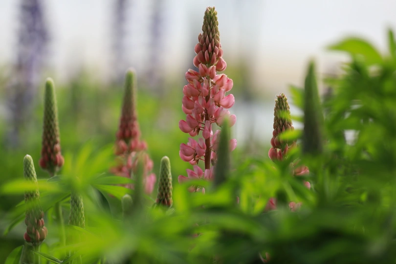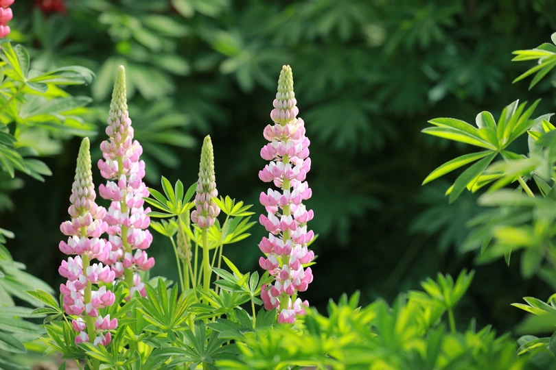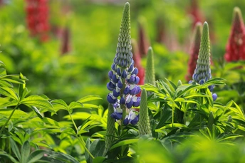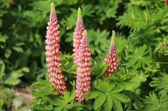 羽扇豆俗称鲁冰花,花序挺拔、丰硕,花色艳丽多彩,有白、红、蓝、紫等变化,而且花期长,可用于片植或在带状花坛群体配植,同时也是切花生产的好材料。