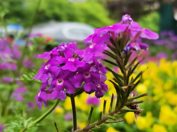 但凡紫色的花,总感觉有点儿神秘。细叶美女樱,一种羽叶状的草,在绿化带迎风摇曳时,那艳丽的色彩,优美的姿态,伞房状的花顶,会让你放慢脚步,腑身观赏。