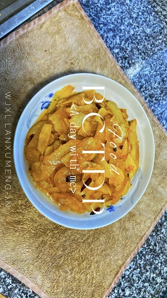 食材 大土豆两个 小辣椒三个 大蒜5个 调料 生抽10克 牦油5克 老抽3克 食盐5克 制作流程 将线椒清净后切片 土豆去皮切片,大蒜切成蒜片 锅中倒入适量油 油热后放入蒜片爆香 倒入切好的小辣椒翻拌均匀 倒入切好的土豆片 继续翻拌 当土豆片炒制稍稍透明时 加入10克生抽 5克毛油 老抽和食盐 将所有调料和食材大火翻拌均匀即可